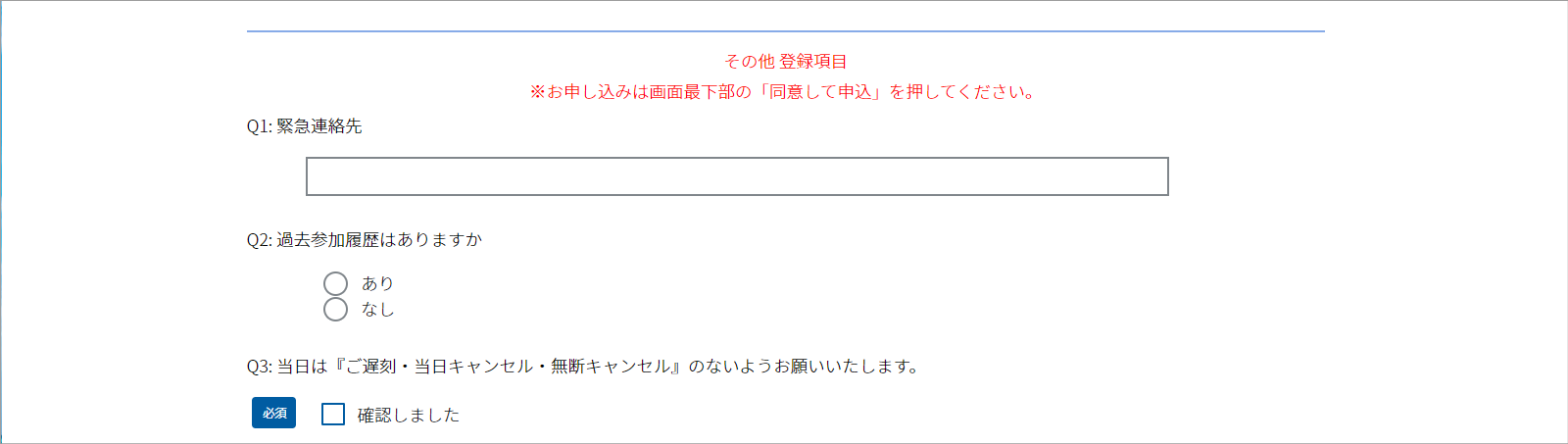 アンケートがある場合は、質問事項に対し回答を入力します。